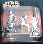 BUILD YOUR ARMY CLONE TROOPERS feature detailed 3.5-inch figures clad in iconic white armor accented with a distinctive red line, capturing the essence of elite clone units. These figures are crafted with precision to appeal to collectors and enthusiasts seeking authenticity and quality. Their durable construction ensures they withstand display or light play, making them a versatile addition to any Star Wars collection. Presented in good condition, these troopers offer both aesthetic appeal and collectible value for fans dedicated to building a formidable clone army.