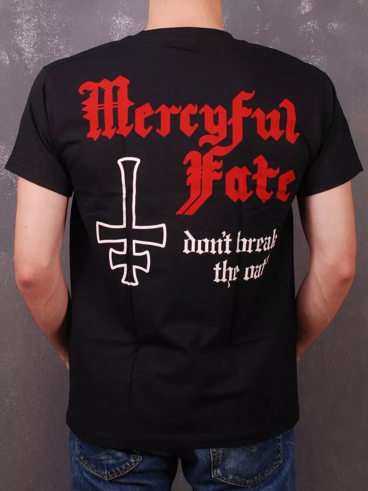 The Mercyful Fate "Don't Break the Oath" Import T-Shirt features a striking design that pays homage to the iconic album. Crafted with quality materials, this shirt offers both comfort and durability for everyday wear. The standout back print showcases detailed artwork that fans will appreciate, making it a must-have for collectors and enthusiasts of classic metal. Perfect for expressing your passion for Mercyful Fate while enjoying a premium fit and lasting style.