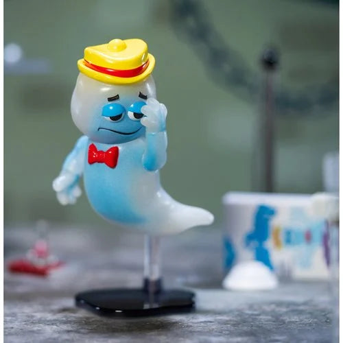 Start your morning with fright and delight by plucking this nostalgic glow-in-the-dark poltergeist from the pantry! Standing about 3 1/2-inches tall, the one-and-only Boo Berry is expertly crafted with meticulous attention to detail. From his signature transparent blueberry-colored body to his adorable little ghostly expression, every aspect of this action figure is a faithful representation of the beloved cereal mascot. The articulated apparition includes his own miniature glow-in-the-dark box of cereal and a display stand. Even sweeter, this spirit arrives in retro cereal-centric window-box packaging that also glows. Make the General Mills Boo Berry 6-Inch Scale Glow-in-the-Dark Action Figure - part of your well-balanced collection!