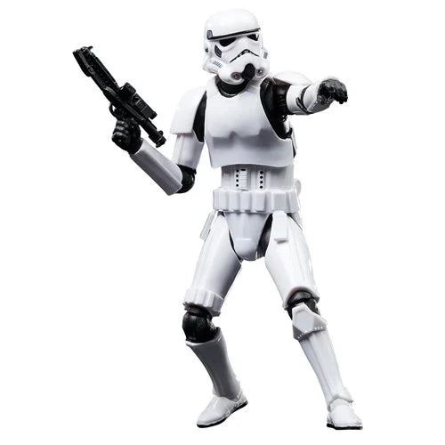 Celebrate the legacy of Star Wars with the Black Series ROTJ Stormtrooper Action Figure, a detailed tribute to the iconic trooper from Episode VI: Return of the Jedi. This 6-inch figure is a modernized, larger version of the classic Kenner toy, featuring an expertly sculpted design that captures the essence of the original while enhancing realism. It offers extensive articulation for dynamic posing and comes equipped with a blaster accessory, perfect for recreating memorable scenes. Packaged on vintage-style cardback art, this collectible honors the 40th anniversary of the film and is ideal for both seasoned collectors and new fans aged 4 and up.