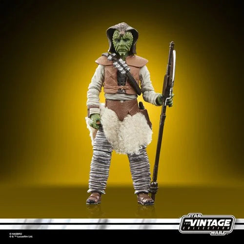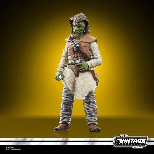 The Wooof (Klaatu) figure from Star Wars The Vintage Collection is a meticulously updated 3 3/4-inch action figure, honoring the original 1983 Kenner design with enhanced detail. Known as one of Jabba the Hutt’s skilled pilots and a Tatooine smuggler, Wooof features his signature fuzzy outfit, complemented by a blaster, pike, and removable hat. This figure is an expert-level collectible that fits perfectly in your Sail Barge or palace display, ideal for fans and collectors aged 4 and up.