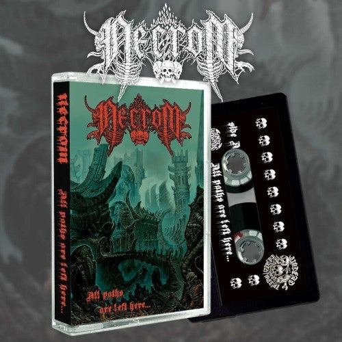 NECROM – All Paths Are Left Here (Tape Edition) delivers a raw and unrelenting descent into the abyss of blackened death metal, channeling ominous atmospheres, blistering riffage, and sheer sonic devastation. This cassette edition encapsulates the eerie and oppressive essence of the album, with its haunting melodies, ritualistic aggression, and otherworldly intensity.