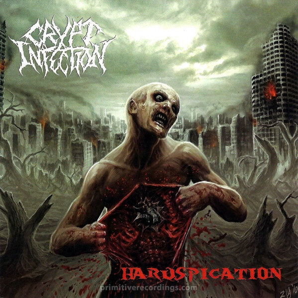 The Haruspication CD by Crypt Infection offers a compelling journey through intense and expertly crafted death metal. Featuring six tracks, including "The One Percent," "Haruspication," and "Mountain of Filth," the album showcases the band's technical precision and brutal soundscapes. Each song delivers complex rhythms and aggressive riffs, with standout tracks like "Genetic Defect" and "Imprisonment" highlighting the band's mastery of atmosphere and intensity. "The Riddle of Insanity" closes the album with a powerful finale, making this release essential for fans seeking a sophisticated and immersive metal experience.