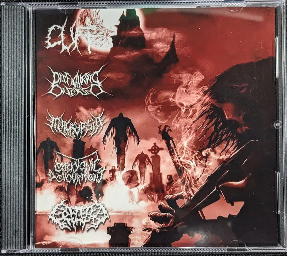 The Kings of Slam 5 Way Split CD is a powerful collaboration featuring five intense bands: Cuff, Disfiguring the Disease, Embryonic Devourment, Macropsia, and Splattered Entrails. This release showcases a diverse range of brutal and technical death metal styles, delivering a relentless listening experience for fans of extreme music. Each band contributes unique compositions that highlight their individual strengths while complementing the overall aggressive tone of the split. Perfect for collectors and enthusiasts seeking a comprehensive snapshot of the underground death metal scene.