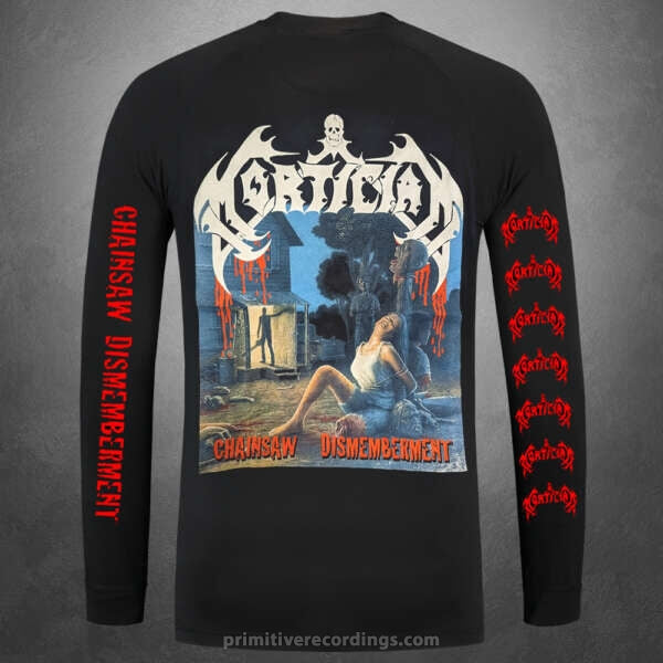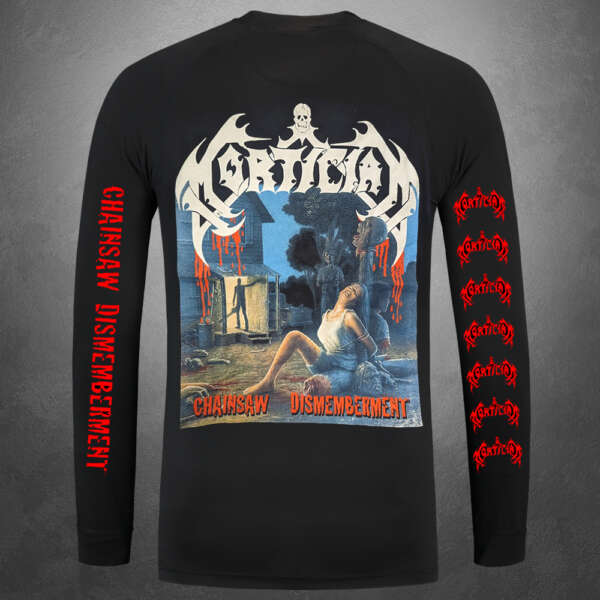 This official limited edition long sleeve features Mortician's iconic "Chainsaw Dismemberment" design, expertly screen printed for lasting detail and vibrancy. It includes striking back and sleeve prints, enhancing its bold aesthetic. Crafted for fans and collectors, this exclusive piece combines comfort with standout style, making it a must-have addition to any Mortician merchandise collection.