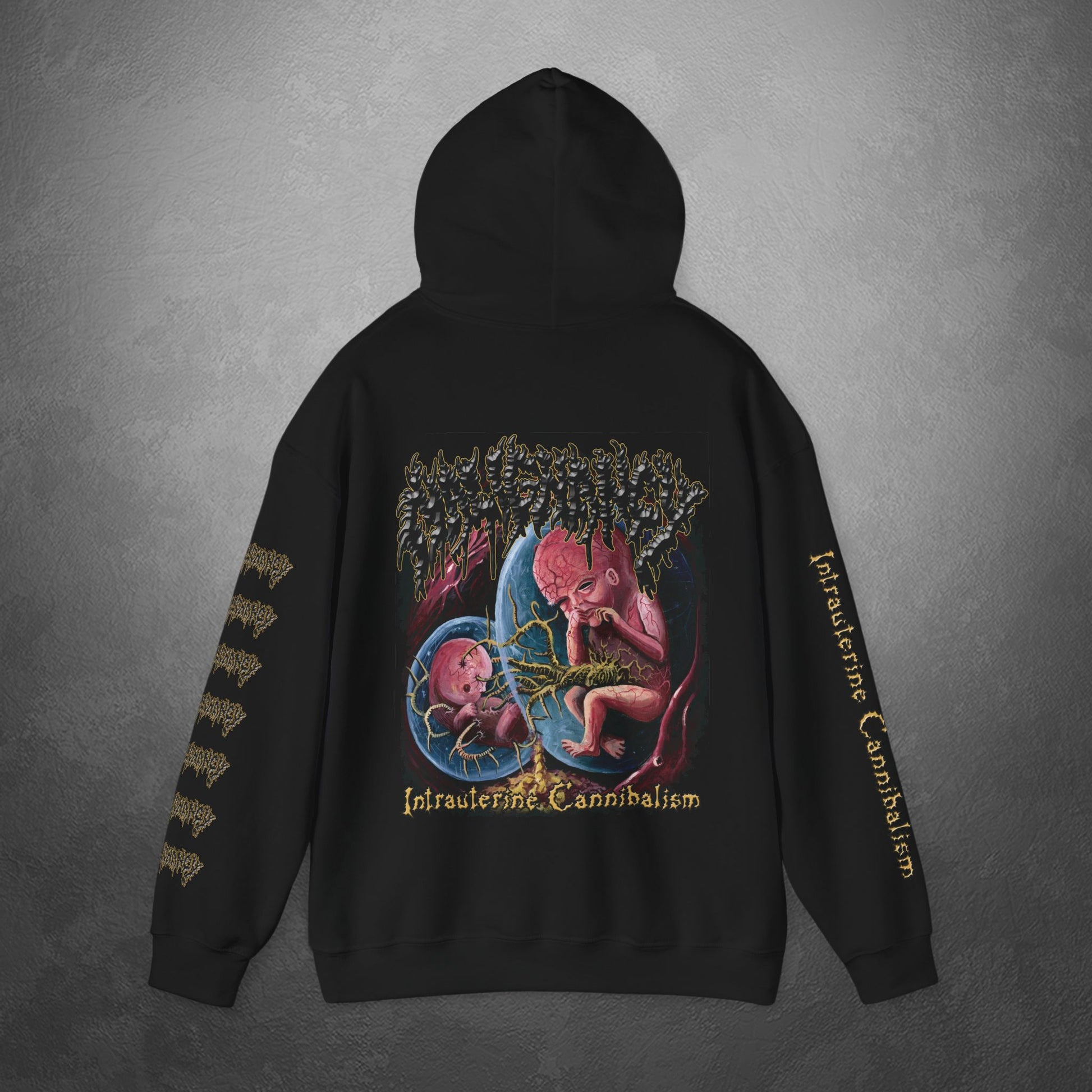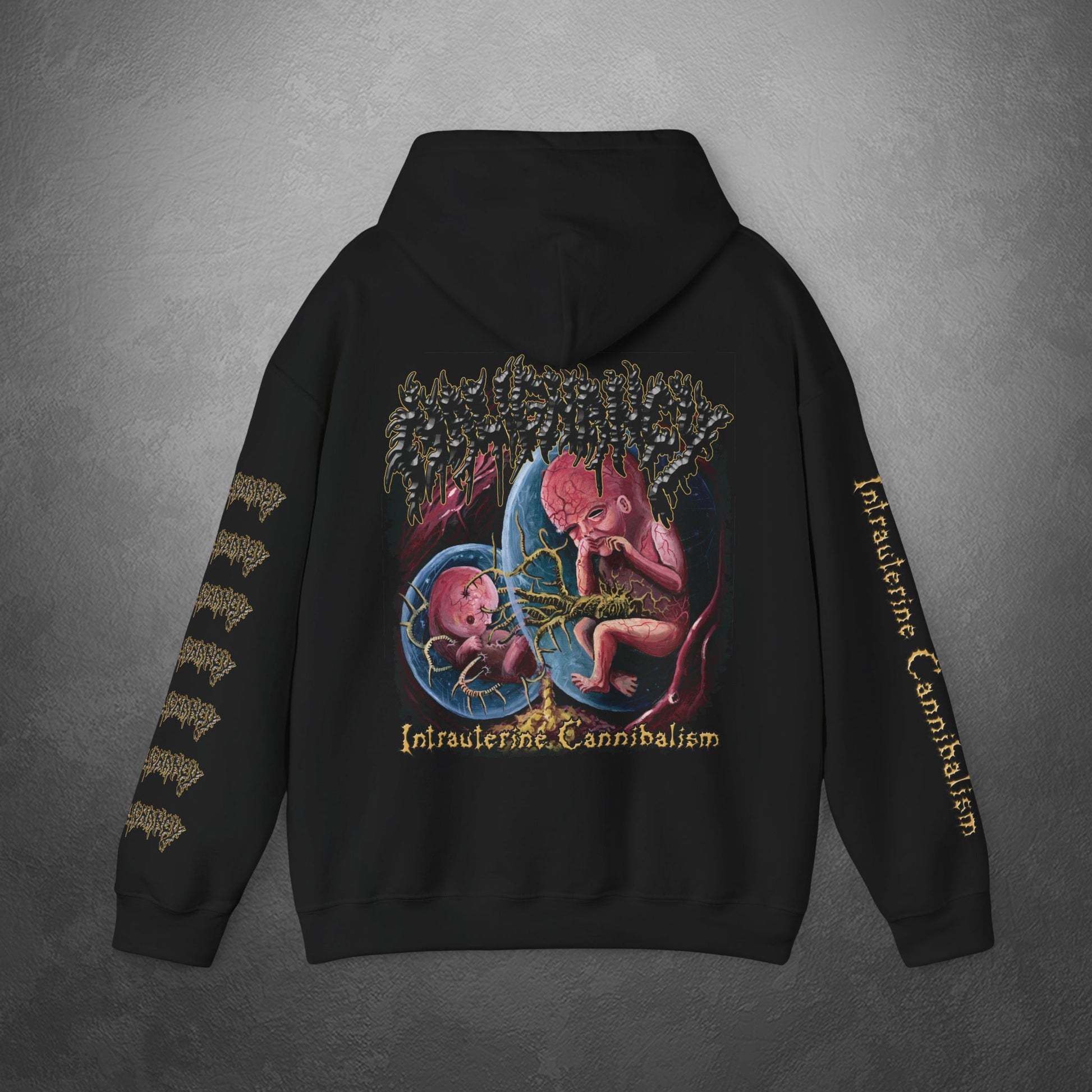 Killer Malignancy Intrauterine Cannibalism Hooded Sweatshirt w Printed Sleeves!