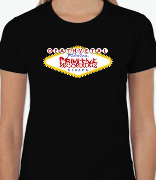 Primitive Recordings "Las Vegas Sign Logo" Ladies T-Shirt Design.