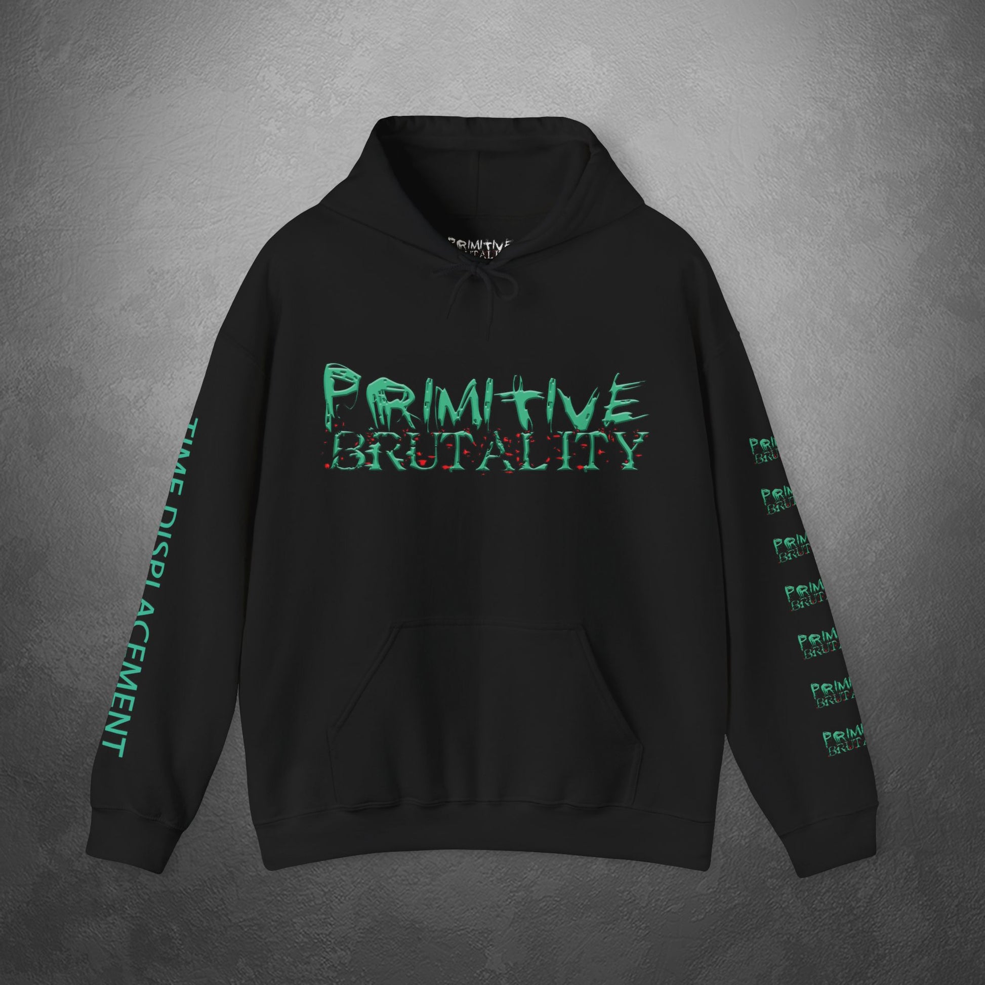 Killer Primitive Brutality Time Displacement Hooded Sweatshirt w Printed Sleeves!