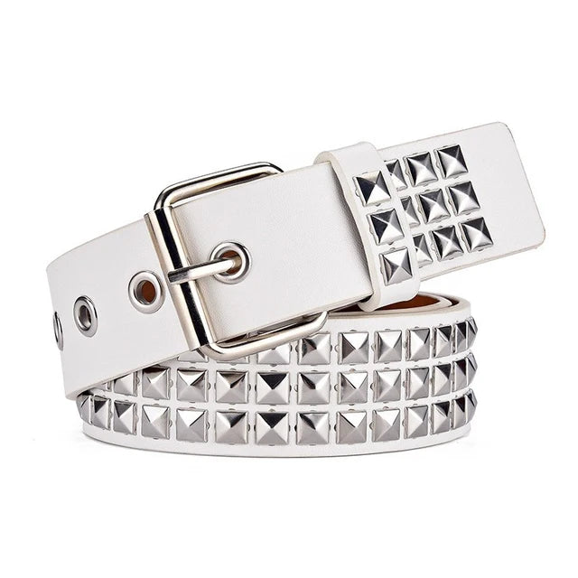 White Studded Belt 43.3 Inches Metal, punk, Men's belt, Retro Made, Old, Alloy, Buckle, Circular, Rivet, Women's Belt, Hip Hop, Rock, Style, Jeans