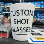Showcase your design on a white ceramic shot glass, with your image wrapping approximately three-quarters around the surface for a striking effect.