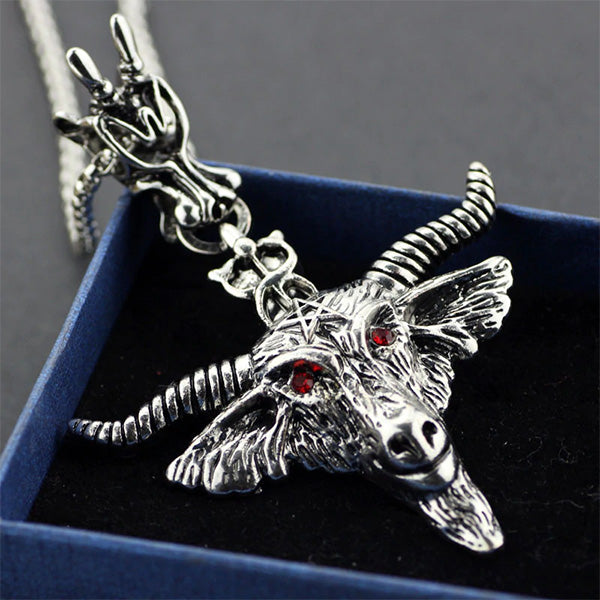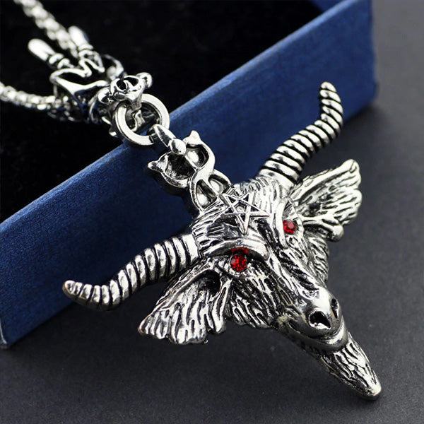 This Baphomet Goat Head Necklace is crafted with exceptional quality, making it a standout piece in any jewelry collection. Measuring approximately 6.3 by 9.3 cm, it offers a bold yet wearable size that complements various styles. Perfect for those who appreciate unique and meaningful accessories, this necklace combines striking design with durable craftsmanship.