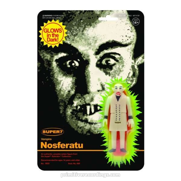 You’d think Nosferatu couldn’t get much scarier, but having him glow-in-the-dark makes him downright spine-chilling. This 3.75” ReAction Figure of Nosferatu is made with glow-in-the-dark plastic and features blood dripping from his jagged teeth. Whether a fan of classic cinema or horror, your collection just won’t be complete without the hair-raising glow-in-the-dark Nosferatu ReAction Figure. The packaging is a tribute to the iconic toy company Remco.