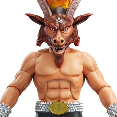 The Slayer Minotaur Ultimates 7-Inch Action Figure captures the fierce spirit of the legendary heavy metal icon from Slayer’s groundbreaking 1983 debut album, Show No Mercy. Expertly crafted with meticulous detail and vibrant paintwork, this figure stands as a tribute to the band’s enduring legacy. It arrives in a deluxe slipcase-style box, perfect for collectors, and includes a comprehensive set of interchangeable accessories that allow for dynamic display options. This figure not only celebrates Slayer’s impact on metal music but also offers fans a high-quality collectible that embodies the raw power and intensity of the Minotaur character.