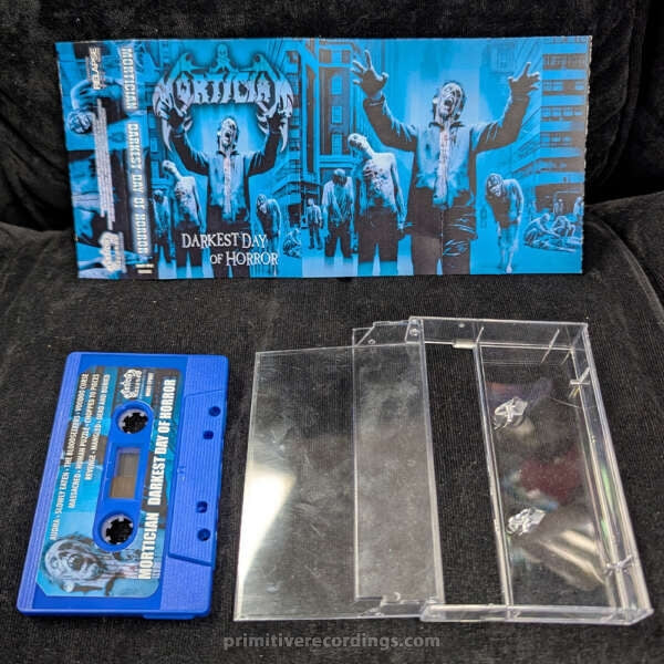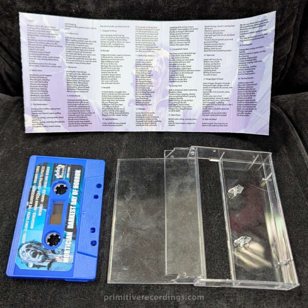 Experience the chilling intensity of Mortician’s "Darkest Day Of Horror" with this exclusive blue reissue audio cassette tape. Featuring a striking 5-panel layout, this limited edition release is a must-have for collectors and fans alike. Immerse yourself in the dark, atmospheric sounds that define Mortician’s signature style, now presented in a unique and collectible format. Don’t miss your chance to own this rare piece of horror metal history.