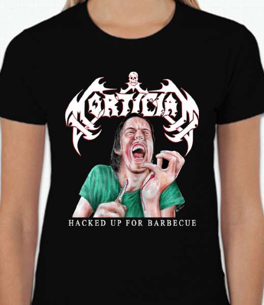 Killer Mortician "Hacked Up Hitchhiker" Ladies T-Shirt.