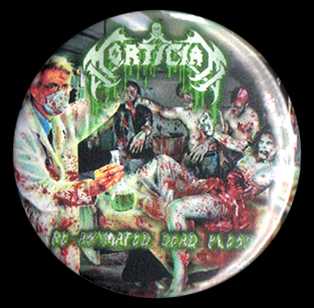 These 1.5-inch Mortician Re-Animated Dead Flesh pins feature a secure back button design, combining distinctive style with reliable wearability. Perfect for collectors and fans seeking a subtle yet impactful accessory.