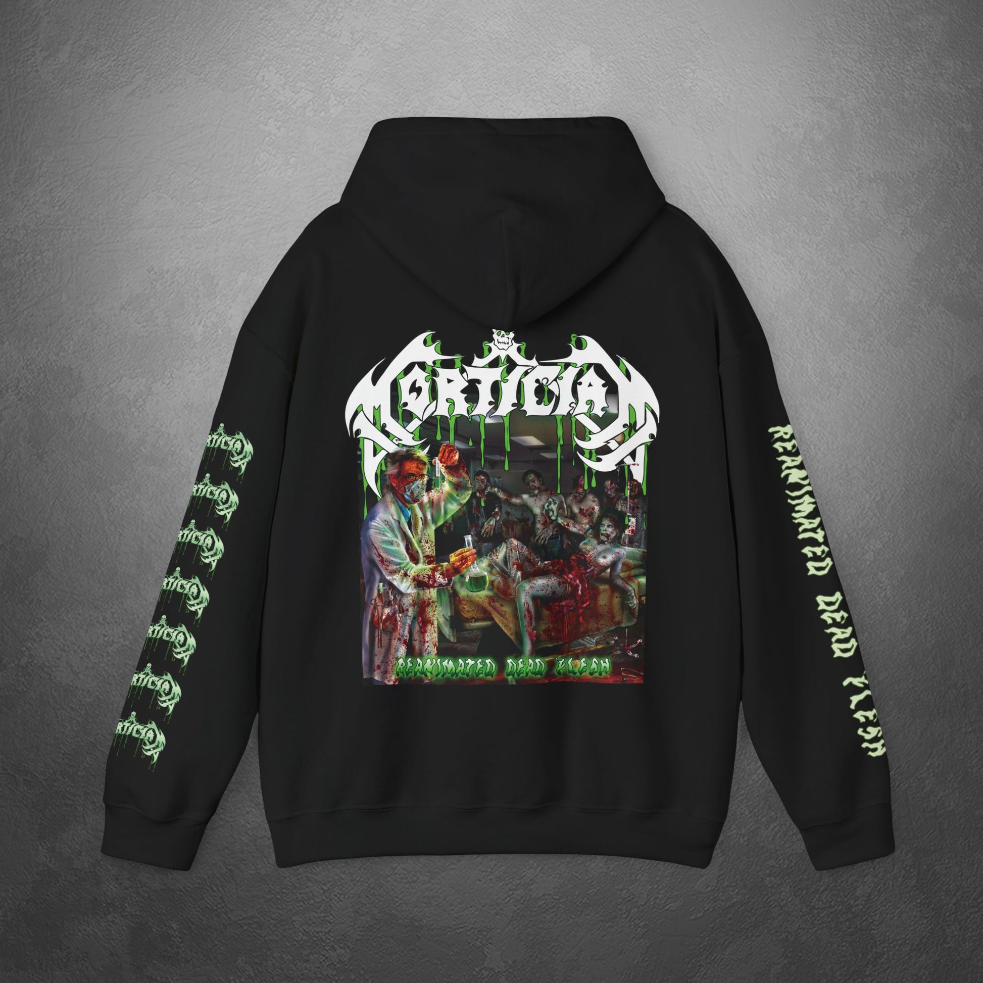 Killer Mortician Reanimated Dead Flesh Hooded Sweatshirt w Printed Sleeves!