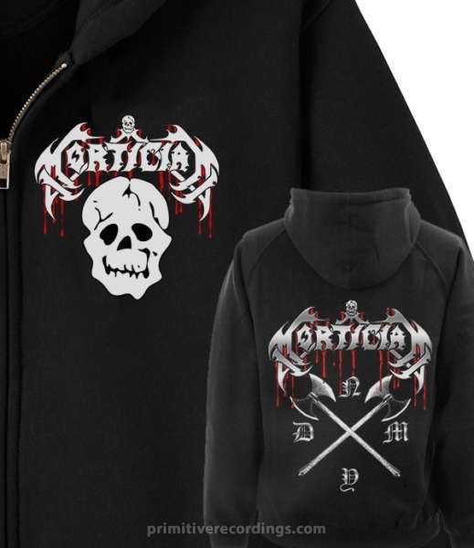 Experience the Mortician "Skull with NYDM Back" Zipper Hoodie, featuring vibrant, high-resolution full-color prints on both the chest and back. Crafted for comfort and style, this hoodie combines striking design with premium quality. Enjoy free shipping within the US as it ships directly from the printers, ensuring you receive a fresh, detailed garment. Perfect for those who appreciate bold, artistic apparel with a refined edge.