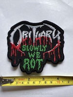 This imported Obituary "Slowly We Rot" embroidered patch offers authentic band memorabilia with detailed stitching. Perfect for collectors and fans seeking to showcase their appreciation for the iconic death metal album.