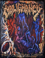 The Frailty of the Human Condition back patch by Malignancy features a striking, edge-to-edge print that captures the intense aesthetic of the band. Measuring approximately 12×15 inches, this giant-sized patch is crafted with a durable 100% polyester front and a PVC waterproof backing, ensuring long-lasting wear and protection against the elements. Perfect for enhancing your battle jacket, it offers both bold visual impact and practical resilience. Backpatch orders are typically fulfilled within 1-2 days, making it a reliable addition to your collection.