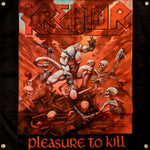 Show your love for Kreator with this impressive 3x3 foot Pleasure To Kill flag. Featuring a large, high-resolution design and reinforced grommets at each corner, it’s perfect for display. Available in limited quantities—grab yours while supplies last!