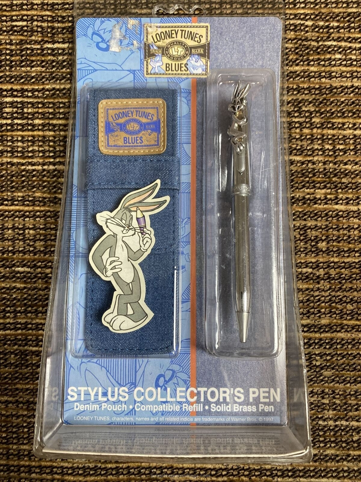 The Bugs Bunny Stylus Collector's Pen is a unique collectible designed for enthusiasts and fans of classic animation. This unopened pen features a detailed Bugs Bunny figure integrated with a functional stylus tip, combining nostalgia with practical use. Ideal for collectors or as a distinctive gift, it offers both display appeal and everyday utility for touchscreen devices. Its unopened condition ensures authenticity and preserves its value, making it a prized addition to any memorabilia collection.