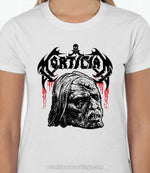 Sick Mortician "Chainsaw Angus" White Ladies T-Shirt.