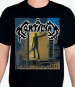 The Mortician "Chainsaw Doorway" T-Shirt design has been updated with a crisper logo and proper font for 2019.