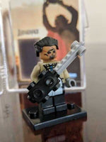 Introducing the exclusive Custom Leatherface Minifigure, a rare collectible with limited stock. Each figure arrives in a bespoke case accompanied by a uniquely designed card reminiscent of classic action figure packaging. Secure this distinctive piece while supplies last.