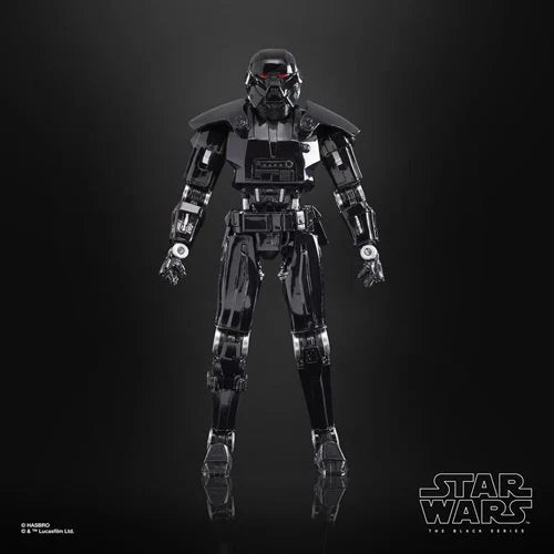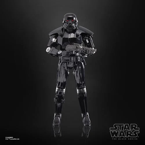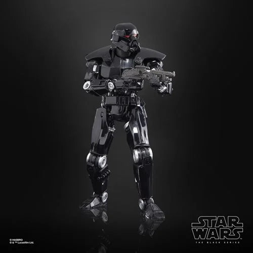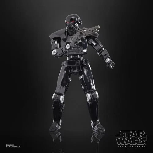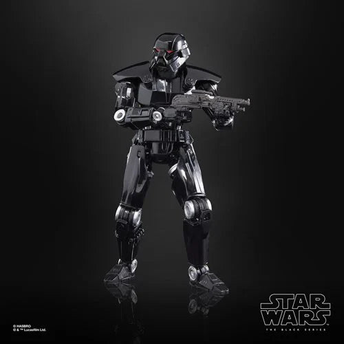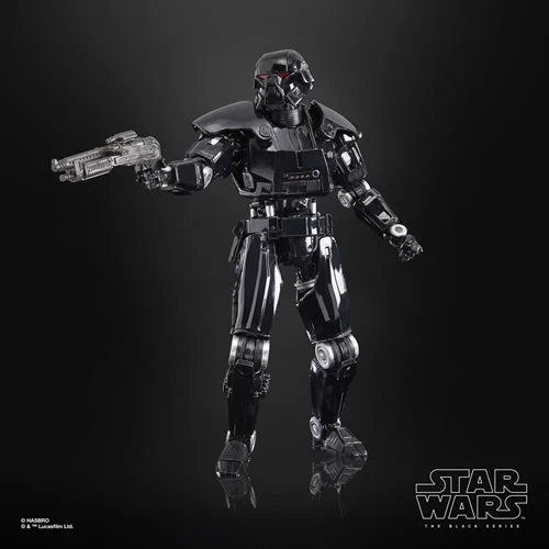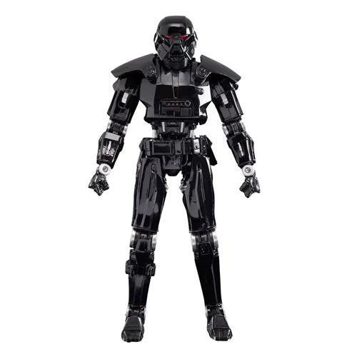 The Dark Trooper 6-Inch The Black Series Deluxe Action Figure captures the imposing presence of the Imperial combat droids featured in The Mandalorian. With sleek black armor and powerful jet boots, this figure echoes the formidable designs reminiscent of those faced by Kyle Katarn in Dark Forces. This deluxe edition includes a detailed blaster, dynamic blast effects, and multiple interchangeable hands designed for wall-punching, Jedi-blasting, and other intense combat poses. Crafted for collectors and fans aged 4 and up, each figure is guaranteed mint condition straight from the box, making it a standout addition to any Star Wars collection.