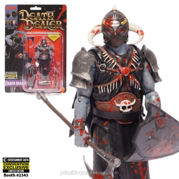 Convention Exclusive! From atop his faithful steed, a menacing armor-clad warrior with a horned helmet, looks down upon the havok of the battlefield. His facial features obsured by heavy shadow, he holds a bloody bearded axe and shield at the ready. The limited edition Death Dealer Blood Splatter Variant Frazetta Girls 5-Inch FigBiz Action Figure - Convention Exclusive has arrived and is sure to bring an air of doom to your toys. Featuring 10 points of articulation, the high-quality figure measures about 5-inches tall and comes with an axe, shield, sword, scabbard, belt and clear FigBiz base. Quantities are limited, so order yours right away!