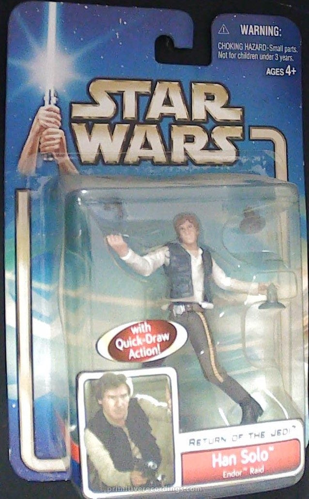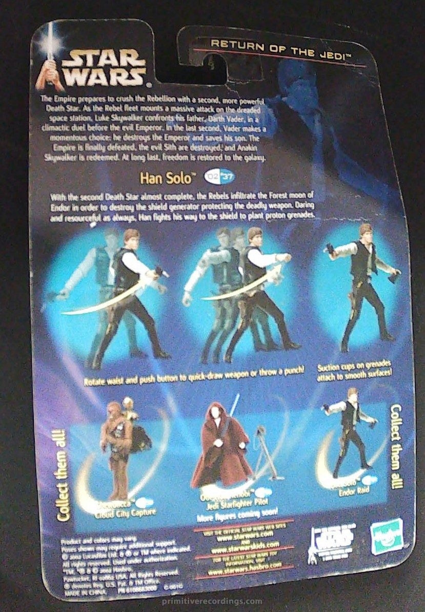 The Hasbro Star Wars Episode 2 Han Solo Endor Raid Action Figure from 2002 is a highly collectible piece, still sealed in its original packaging. This figure captures Han Solo in his iconic Endor raid outfit, reflecting the detailed design and craftsmanship typical of Hasbro’s early 2000s Star Wars line. Perfect for collectors and enthusiasts, this sealed figure preserves its mint condition, making it a valuable addition to any Star Wars memorabilia collection. Its authenticity and rarity from the Episode 2 era enhance its appeal for serious fans and collectors alike.