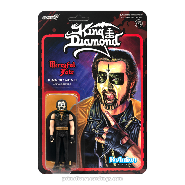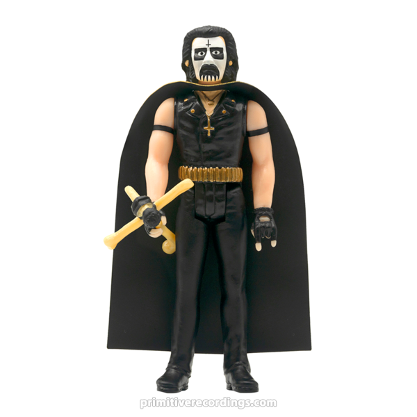 In 1984, King Diamond and Mercyful Fate embarked on their first tour of North America. This version of the King Diamond 3.75” ReAction Figure commemorates this with King’s stage makeup and handmade cape that he wore onstage! His trademark crossbone mic stand is also included.
