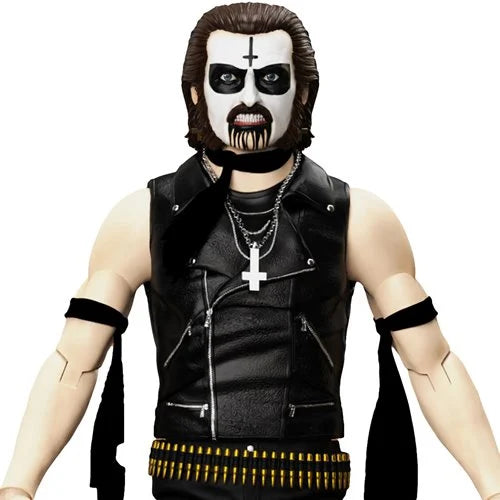 The King Diamond Ultimates Modern Era 7-Inch Action Figure captures the legendary metal icon at the dawn of his career during Mercyful Fate’s 1982 European mini tour. This meticulously crafted figure features premium paint applications and intricate detailing that reflect King Diamond’s distinctive stage presence. It includes interchangeable heads and hands to recreate various expressions and poses, along with his signature crossed bones microphone stand. The figure is dressed in a soft goods robe modeled after the exact garment worn on that historic tour, enhancing authenticity. Presented in a deluxe window box with a slipcase cover, this collectible honors the origins of a metal legend and is a must-have for dedicated fans and collectors alike.