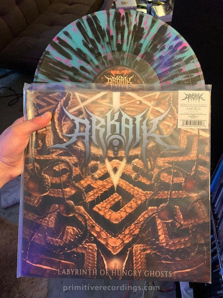 Labyrinth Of Hungry Ghosts Amoria Variant is a rare vinyl release limited to only 100 copies worldwide. This technical death metal album by Arkaik features eight intricate tracks, including "The Orphion Descent" and the title track "Labyrinth Of Hungry Ghosts." Pressed on transparent blue vinyl with black and magenta splatter, this collectible LP from The Artisan Era (AE-51-1) offers exceptional sound quality and striking visual appeal, making it a must-have for serious collectors and fans of complex, aggressive metal. Released March 11, 2022, in the USA and Europe.