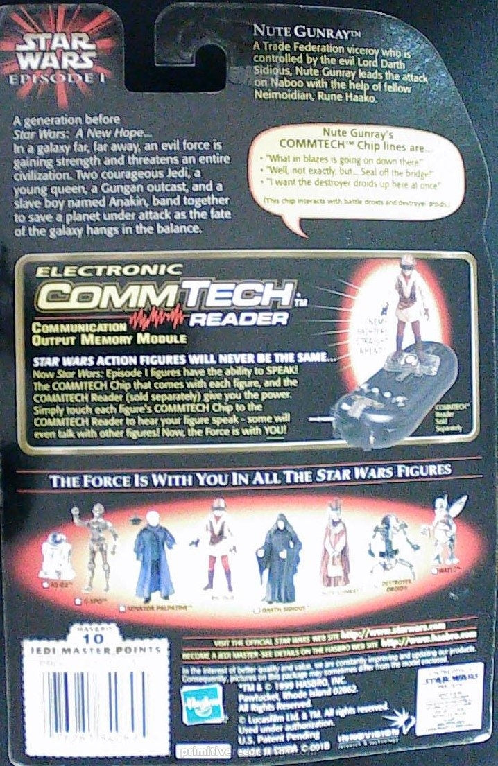 The Nute Gunray CommTech Chip from 1999 by Hasbro is a collectible accessory designed for Star Wars action figures. This chip, featuring the character Nute Gunray, is in good condition, making it a valuable addition for collectors seeking authentic vintage pieces. Compatible with Hasbro’s CommTech system, it enhances play and display by unlocking character-specific audio content, enriching the Star Wars experience with immersive storytelling and detailed character insights. Ideal for enthusiasts aiming to complete their 1990s Star Wars figure sets or to preserve a piece of franchise history.