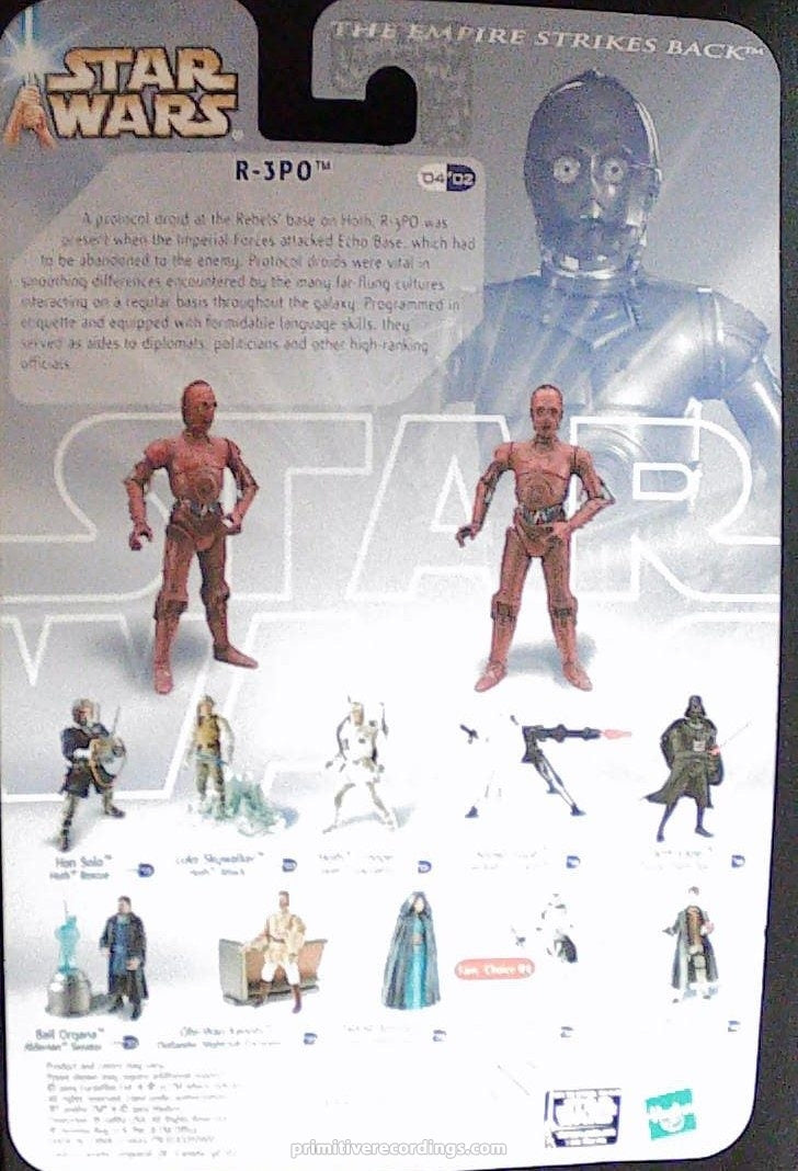 The R-3PO Hoth Evacuation 2003 action figure is a collectible from the iconic Empire Strikes Back series, capturing a unique moment from the Star Wars saga. This figure is in good condition, making it a valuable addition for enthusiasts and collectors alike. Detailed to reflect the character’s appearance during the Hoth evacuation scene, it offers both nostalgic appeal and display quality. Perfect for fans seeking authentic memorabilia from the 2003 release, this piece enhances any Star Wars collection with its faithful design and connection to a pivotal film moment.