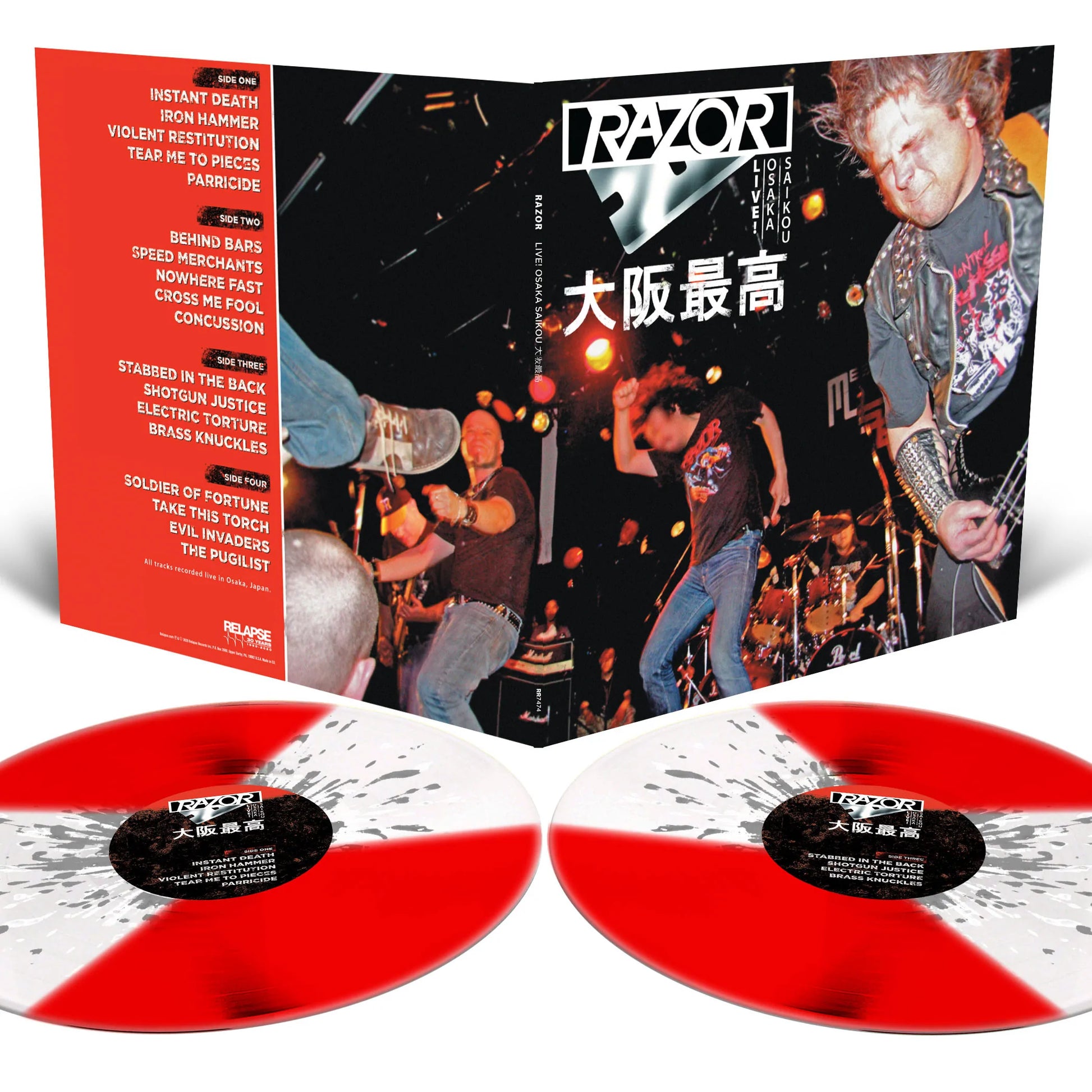 Experience the vibrant energy of Razor Live! Osaka Saikou with this exclusive reissue on 12-inch vinyl. Pressed on striking blood red vinyl featuring metallic silver and white splatter, this limited edition release is capped at just 520 copies, making it a rare collector’s item. The gatefold sleeve enhances the presentation, offering a premium tactile and visual experience. Perfect for audiophiles and fans alike, this record delivers powerful live performances with exceptional sound quality, capturing the raw intensity and atmosphere of the Osaka show. Add this standout piece to your collection for a unique blend of artistry and exclusivity.