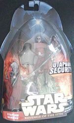 The Revenge of The Sith - Utapaun Warrior (Utapaun Security) Action Figure captures the distinctive look of the Utapaun security forces from the Star Wars saga. Crafted with attention to detail, this figure showcases the unique armor and weaponry characteristic of the Utapaun warriors, making it a valuable addition for collectors and enthusiasts. Its good condition ensures it retains both display appeal and play value. Perfect for fans seeking to expand their Star Wars collection with authentic and expertly designed characters from Episode III.