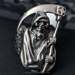Crafted from durable stainless steel, this Grim Reaper ring combines bold design with lasting strength. Its heavy-duty construction ensures resilience, making it a striking accessory for those who appreciate distinctive, enduring style. Available in limited quantities, this piece offers a unique statement for your collection.