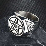 This heavy-duty pentagram ring is expertly crafted from premium stainless steel, offering both resilience and a polished, sophisticated look. Its distinctive design makes a bold statement while ensuring lasting wear. Available in limited quantities for those seeking a unique and enduring accessory.