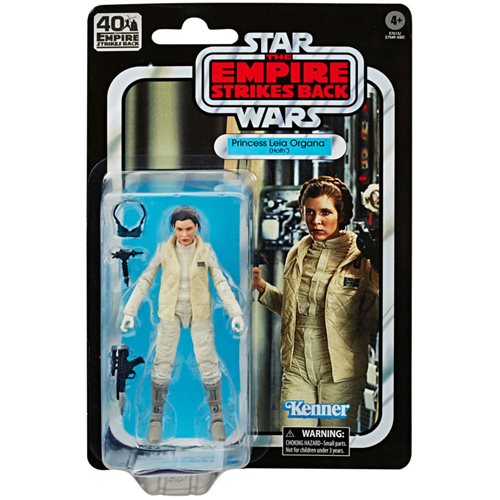 This Star Wars The Black Series Empire Strikes Back 40th Anniversary 6-Inch Princess Leia Hoth Action Figure brings back one of the legends that started it all, modernized and enlarged with an incredible sculpt and accessory, on vintage-style cardback packaging from Hasbro! Leia features over 20 points of articulation and comes with a blaster. Ages 4 and up.