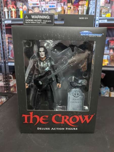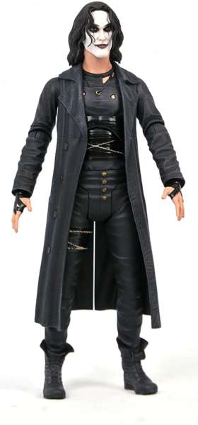 The Crow lives again! Eric Draven has returned, and The Crow lives again! This 7-inch scale action figure of The Crow is based on his trench coat-wearing appearance in the 1994 movie and features 16 points of articulation. Accessories include gravestone, guitar, crow and interchangeable hands.