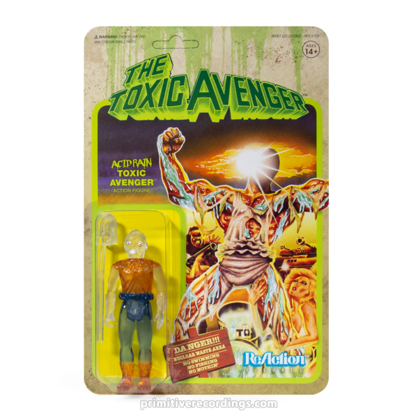 The first Super Hero from the State of New Jersey has returned! This Limited Edition CLEAR Acid Rain Toxic Avenger 3.75" ReAction Figure captures our hero as he transforms from nerd to super hero. Cut out the Nuclear Waste barrel on the back of the cardback to make Toxie even more heroic! Comes with mop accessory.